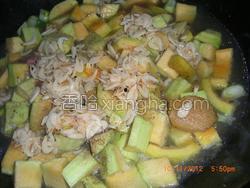 1. 将牛腿瓜洗净,切成条状,用盐和胡椒粉腌制10分钟。